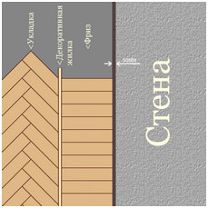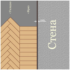 Фриз обрамляет периметр паркетного настила, придает ему завершенный вид, сглаживает конструктивные неточности и отступления от симметрии в помещении.